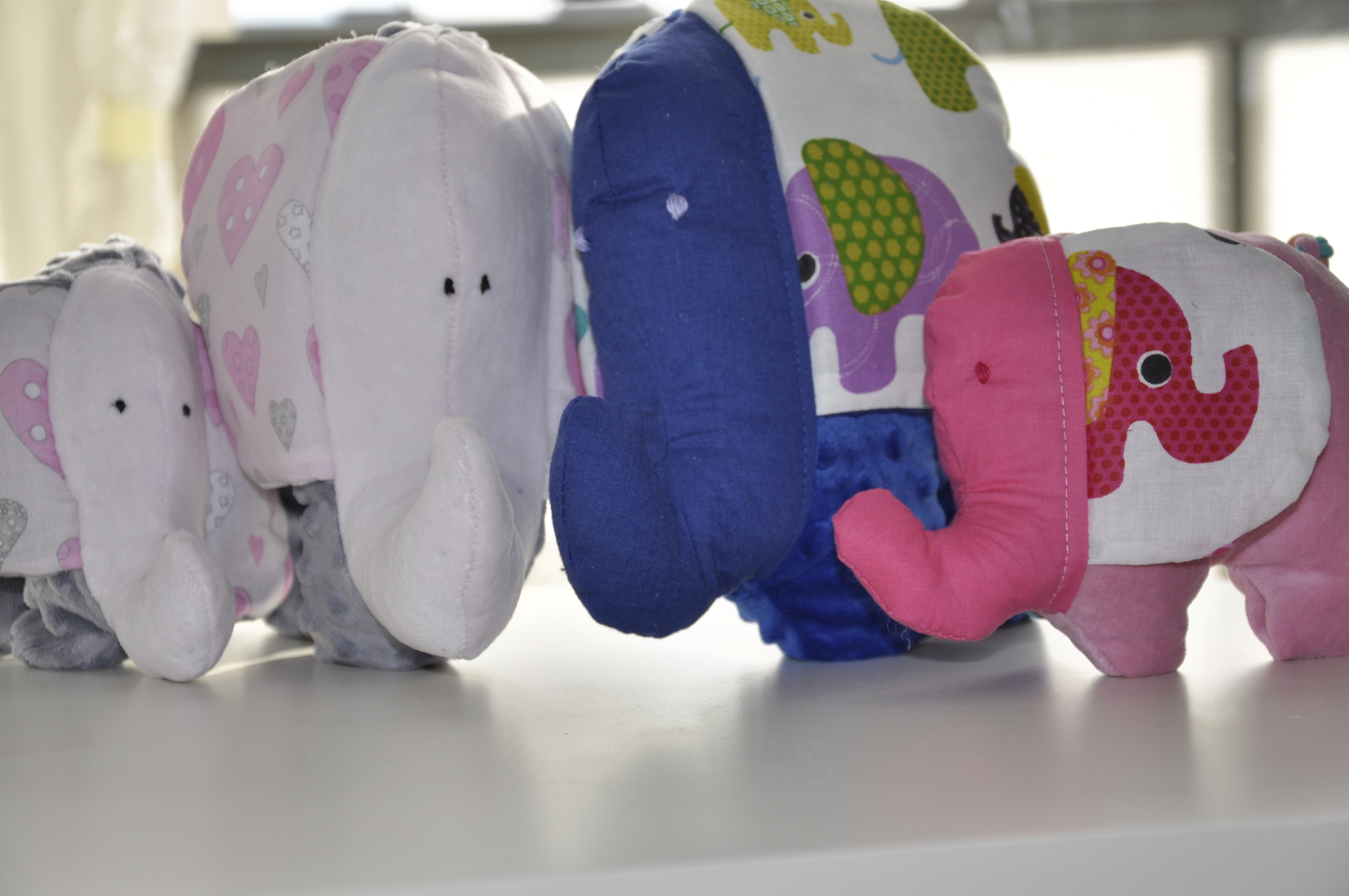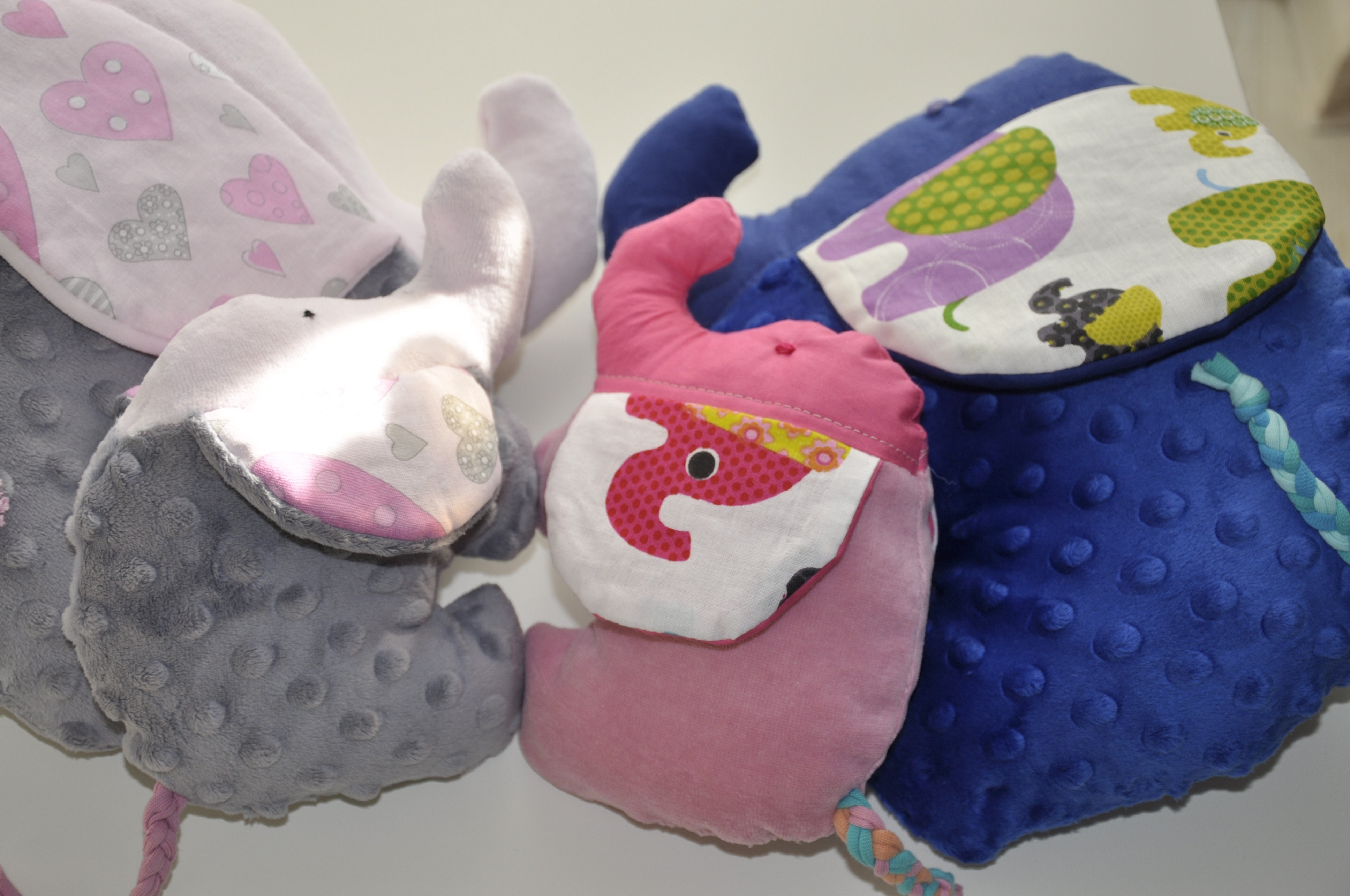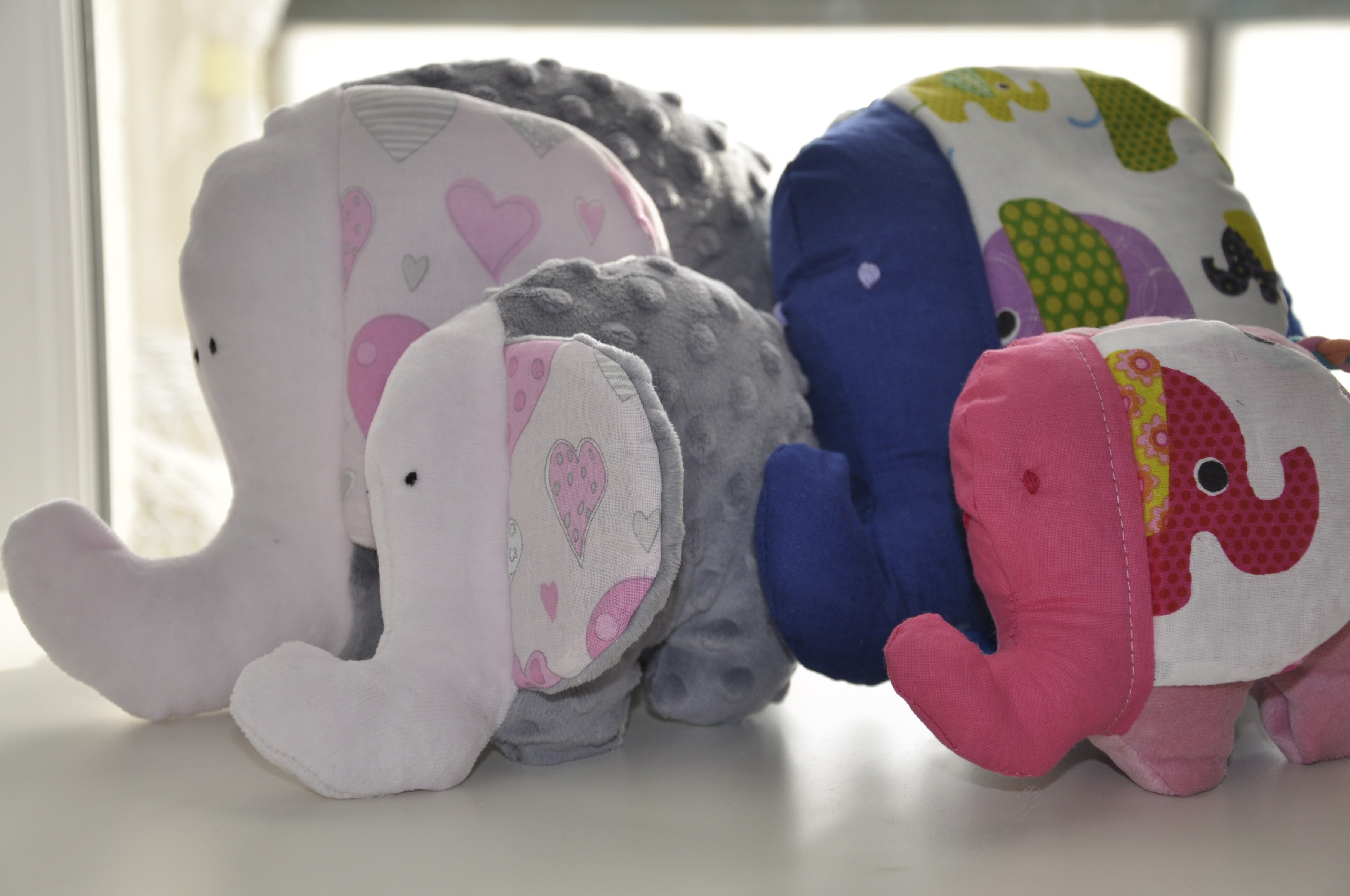 Jakiś czas temu pokazywałam Wam podusie dekoracyjne moich dziewczyn. Wśród nich była podusia w kształcie słonia. Dziewczynkom tak bardzo się ona spodobała, że przez kilka miesięcy nie dawały mi spokoju i w końcu stworzyłam całą rodzinkę kolorowych słoni. Połowa zamieszkała co prawda u mojego bratanka, ale myślę, że „słoniki będą się odwiedzać” jak się tylko nadarzy okazja ;P