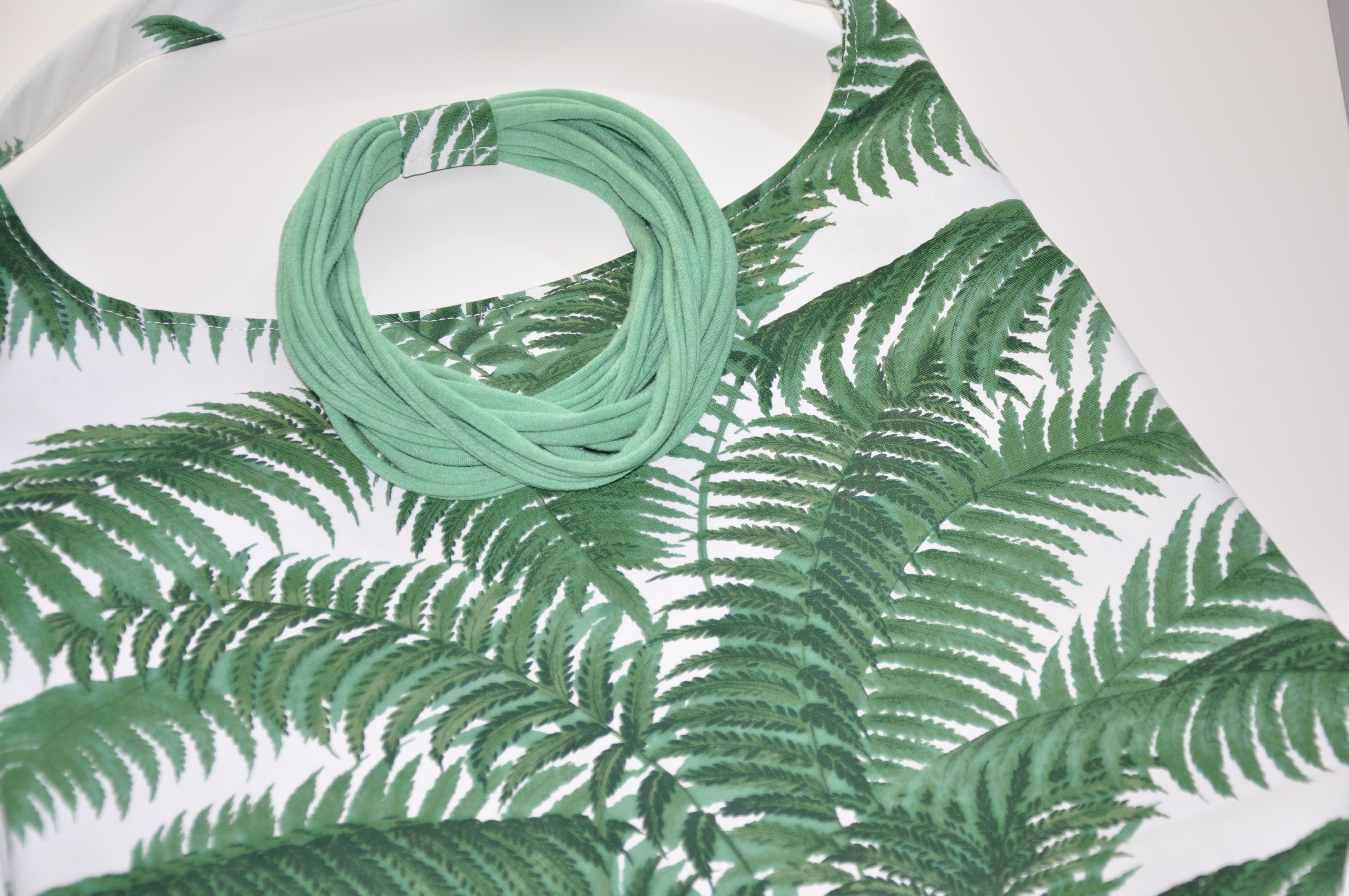 Długo nosiłam się z zamiarem przerobienia pięknej, grubej, zasłonowej tkaniny z motywem paproci. Nie bardzo wiedziałam co chciałabym z niej uzyskać, ale na pewno miało to być coś fajnego. Długo nie mogłam zdecydować się co to mogłoby być. Po prostu pewnego dnia będąc na łowach w sklepie z używaną odzieżą wpadła mi w ręce jedna zasłonka w paprotki i wiedziałam, że na coś ją wykorzystam…