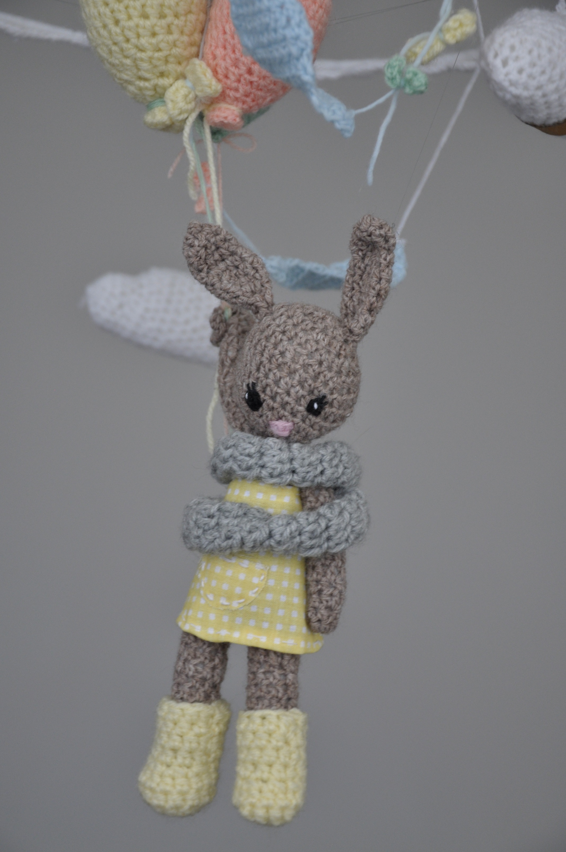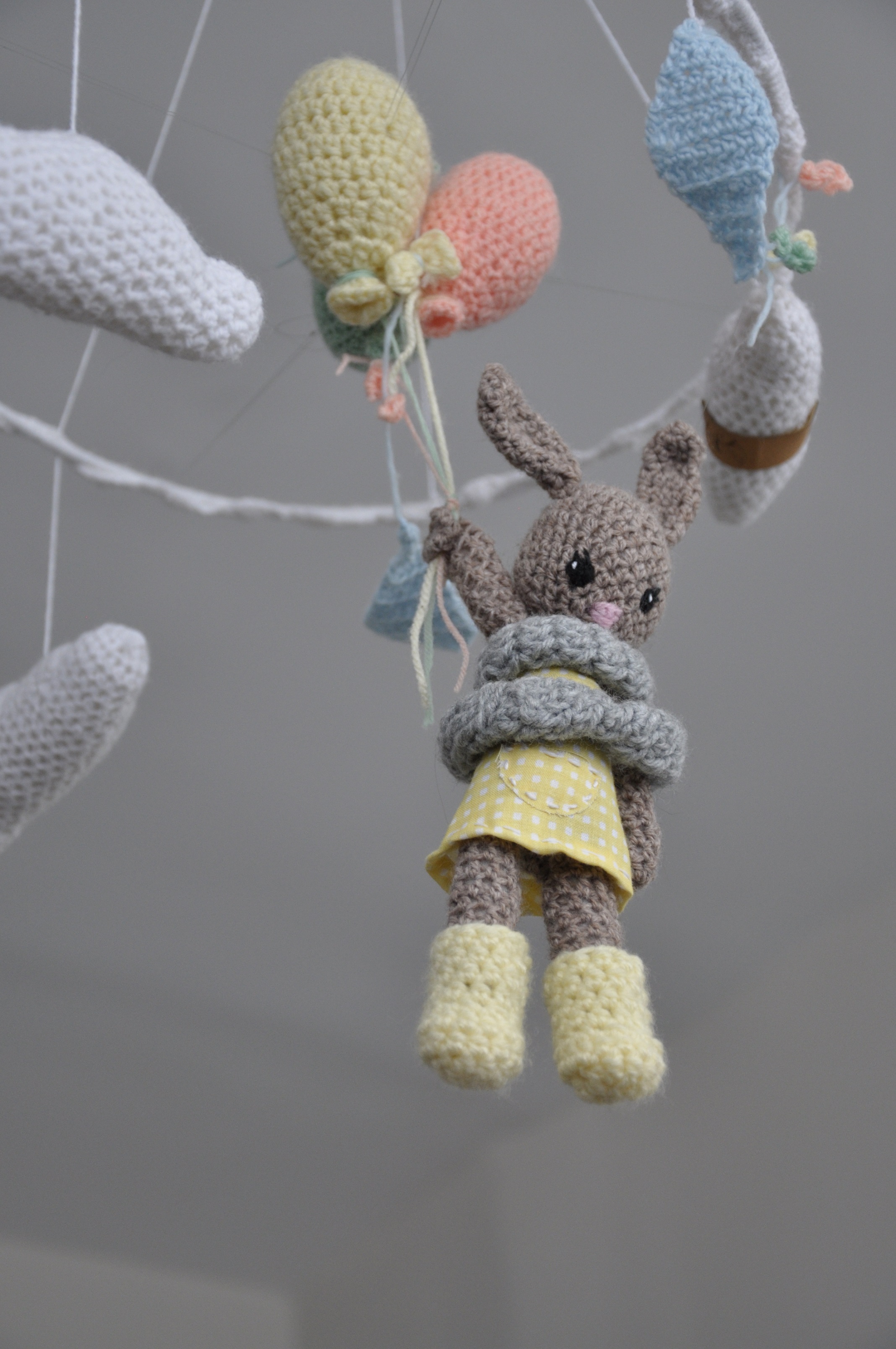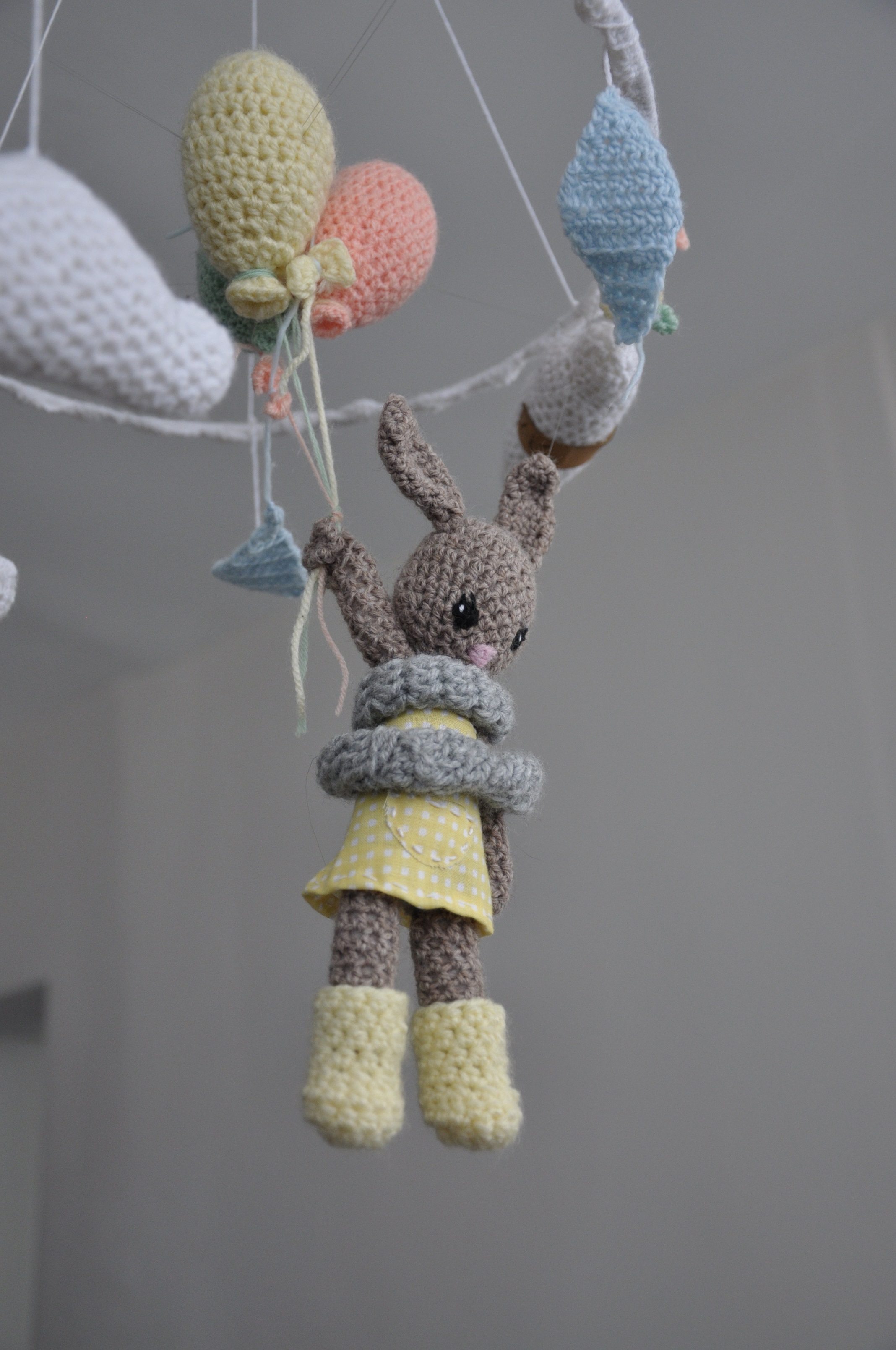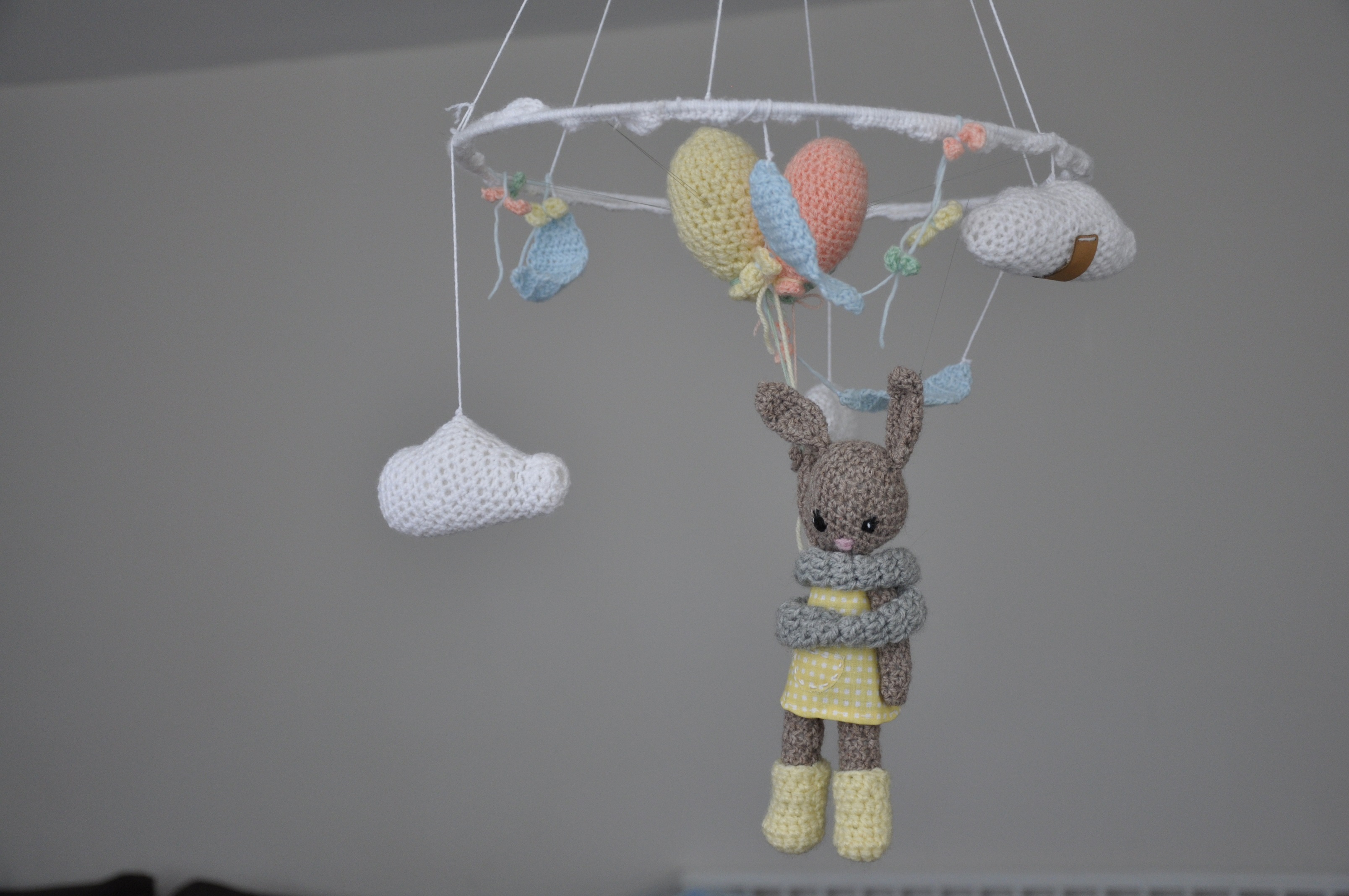 Jak wiecie, bo już o tym wspominałam chyba, a jeśli nie to napiszę to teraz, bardzo podobają mi się prace mojej siostry na szydełku. Dzierga sobie w wolnym czasie i bardzo fajnie jej to wychodzi. Jakiś czas temu wykonała dla jednego takiego fajnego bąbelka karuzelkę nad łóżeczko 🙂