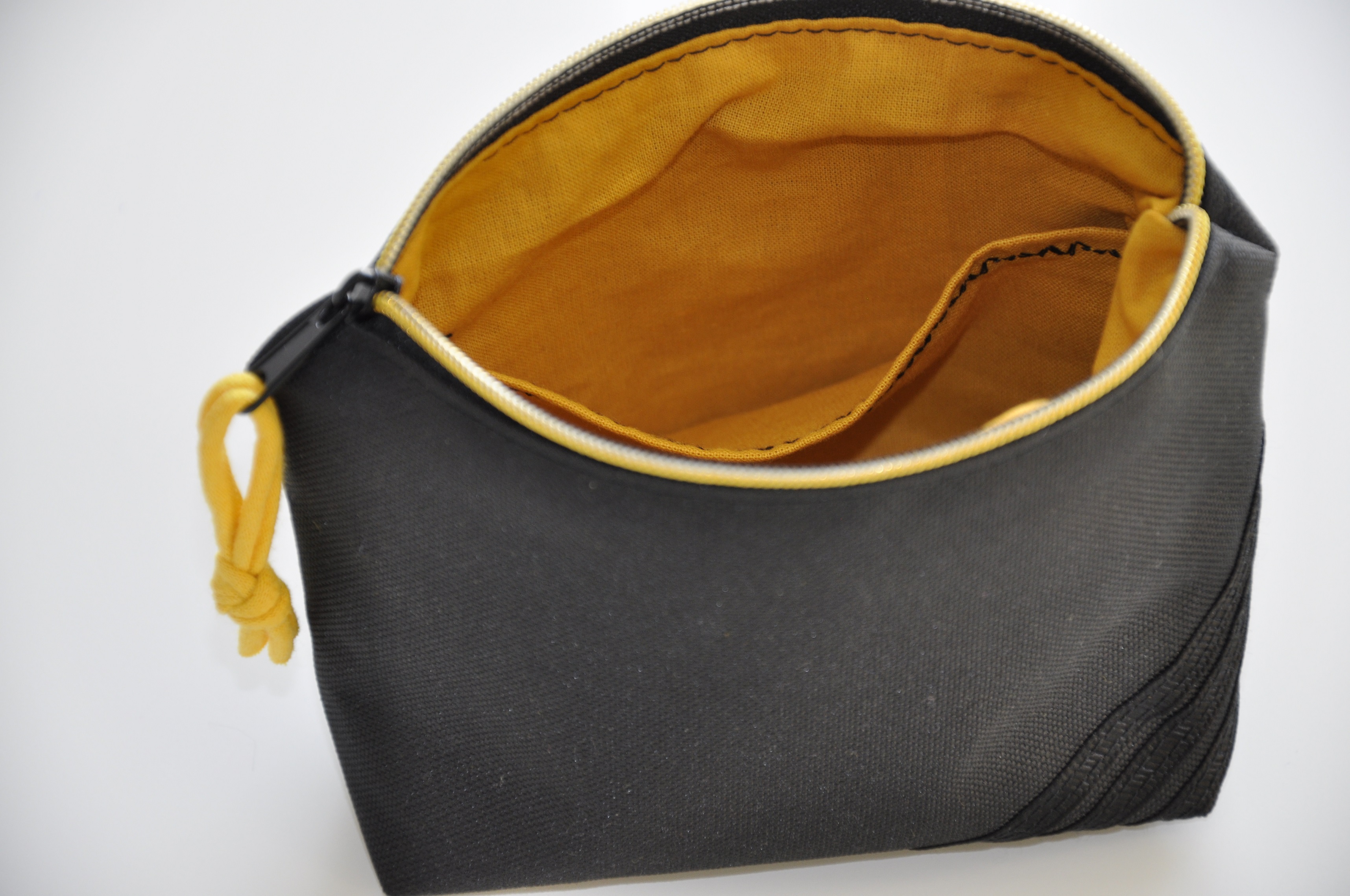 Jak widzicie takich rzeczy nigdy za mało 🙂 Dziś zaprezentuję Wam jeden z ostatnich moich uszytków, a mianowicie małą kosmetyczkę, w kolorze czarnym z miodowymi akcentami 🙂