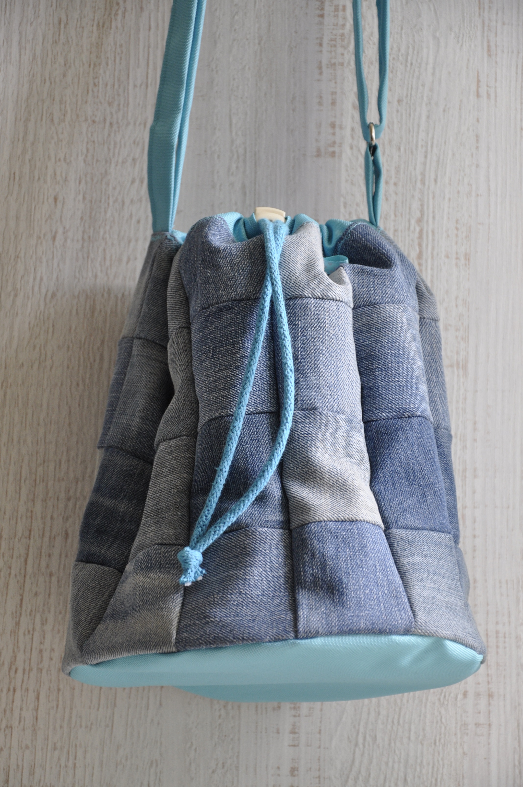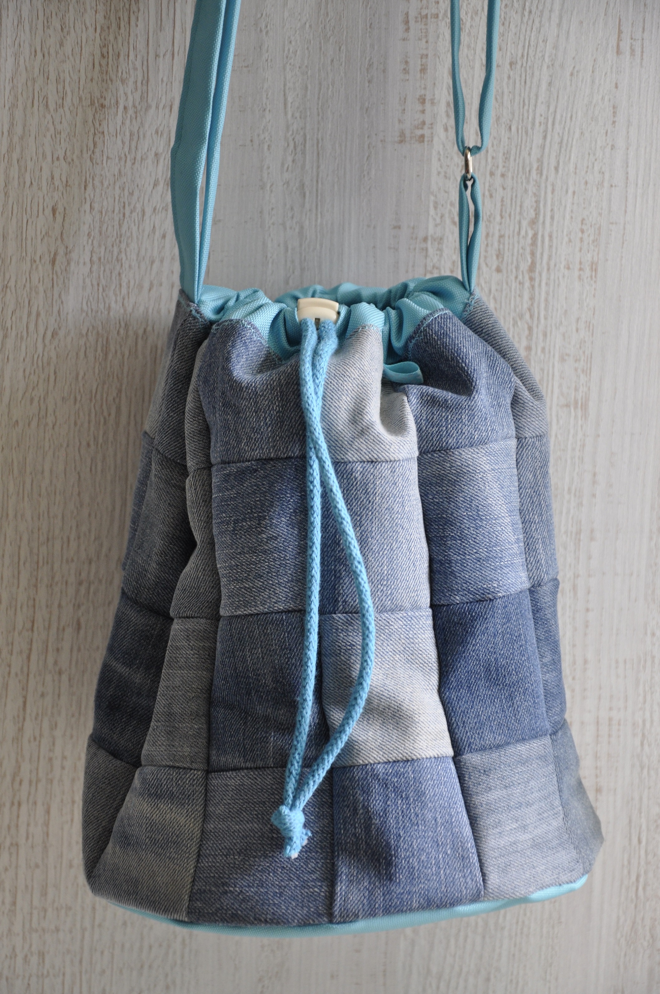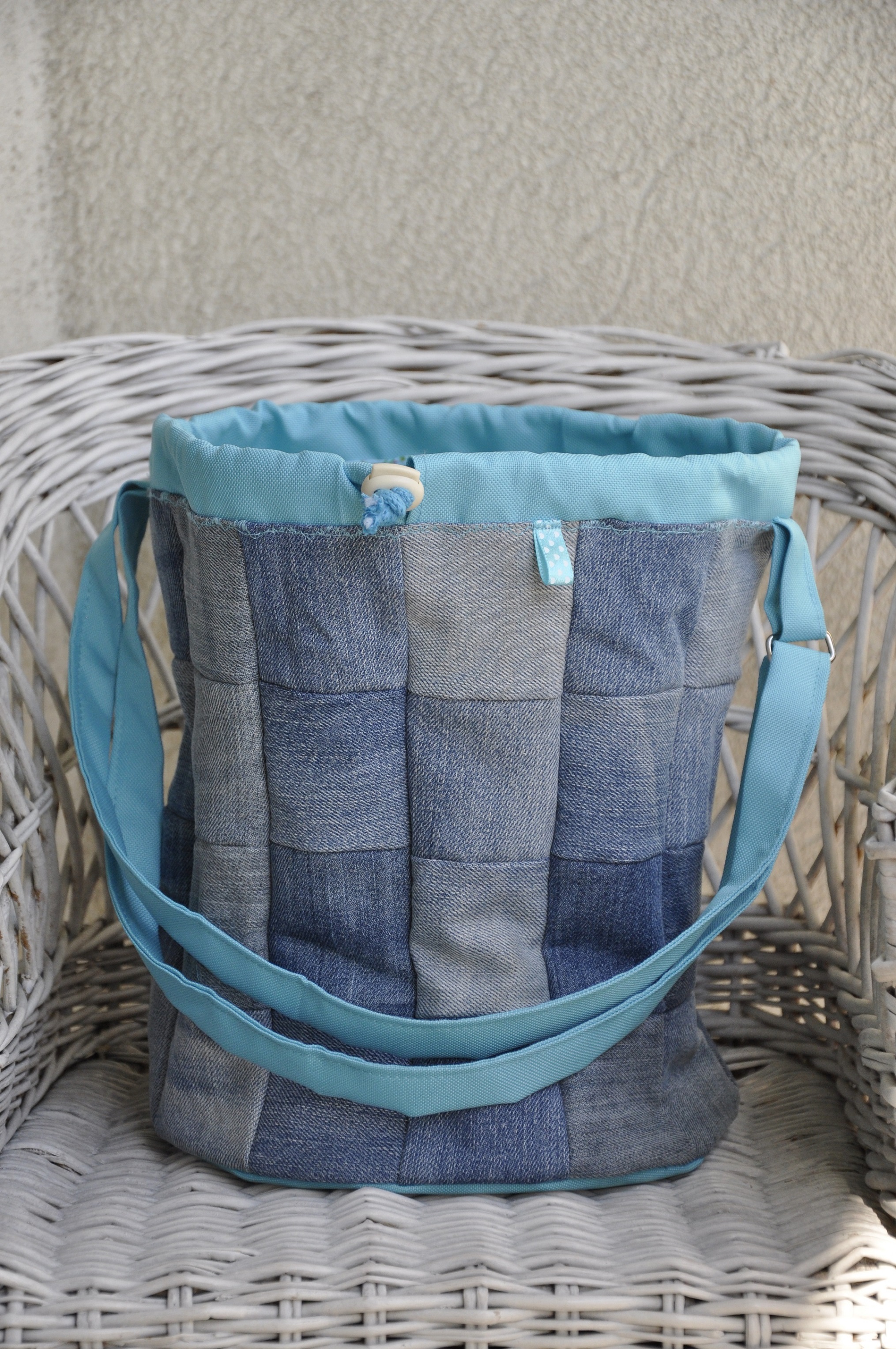 Tym razem poniosła mnie trochę fantazja, coraz mniej mam kawałków jeansu więc coraz bardziej kombinuję 🙂 generalnie pocięłam sobie jeans na kwadraty o boku 7 cm i zaczęłam je zszywać. W sumie to świtało mi, że chcę uszyć torebkę z tego ale do końca nie wiedziałam jaką będzie miała formę.