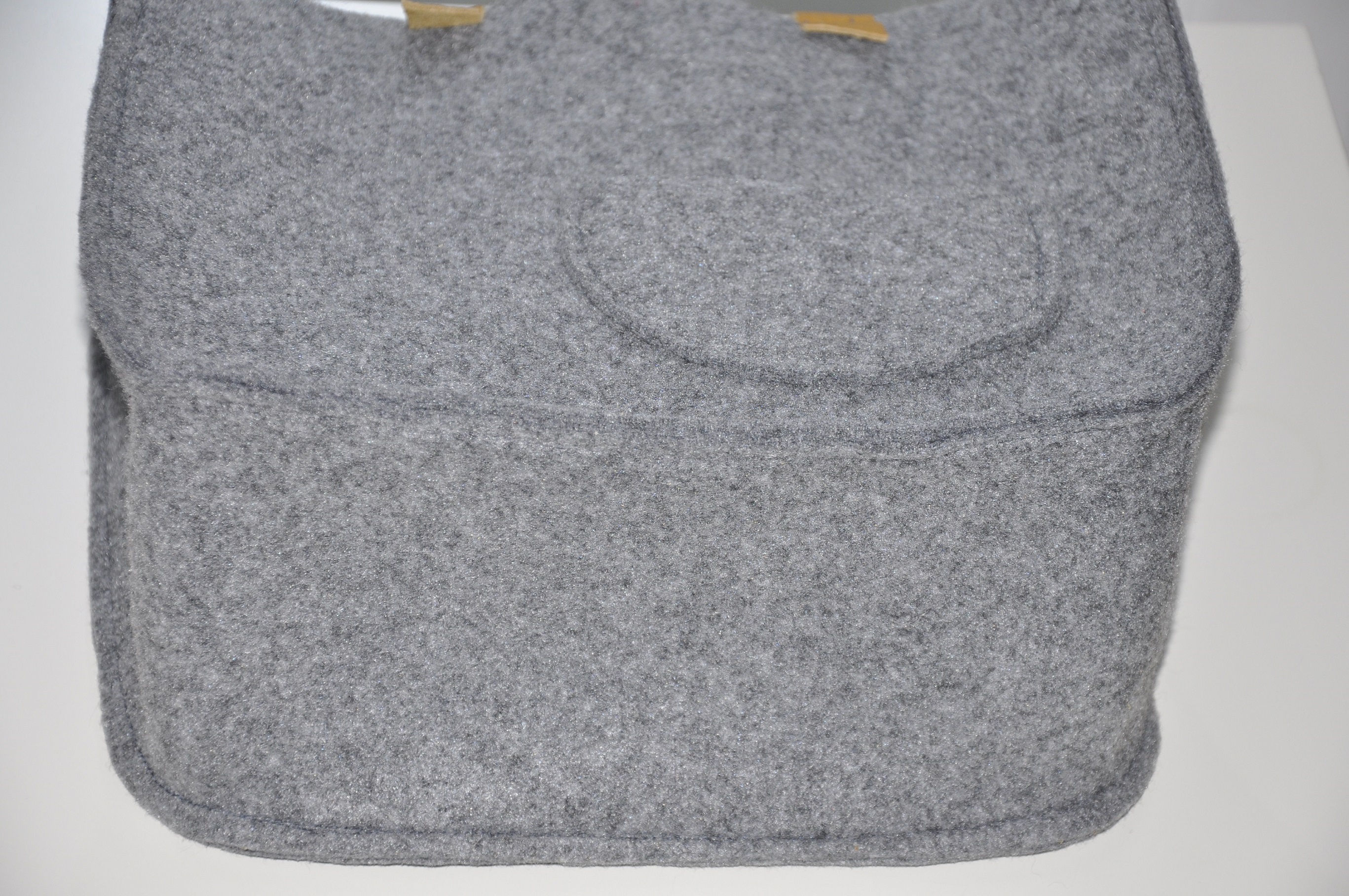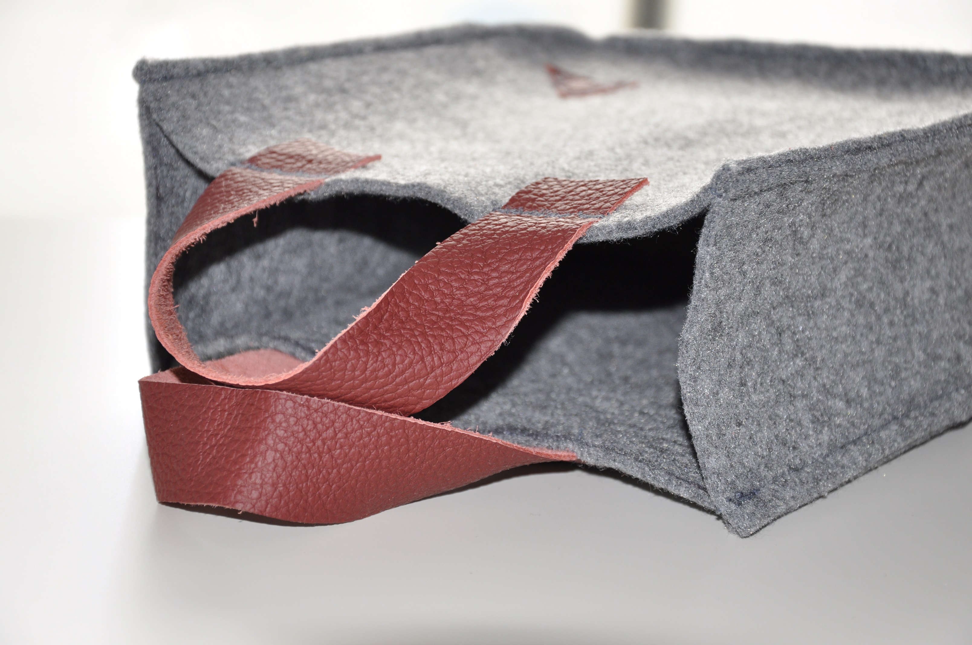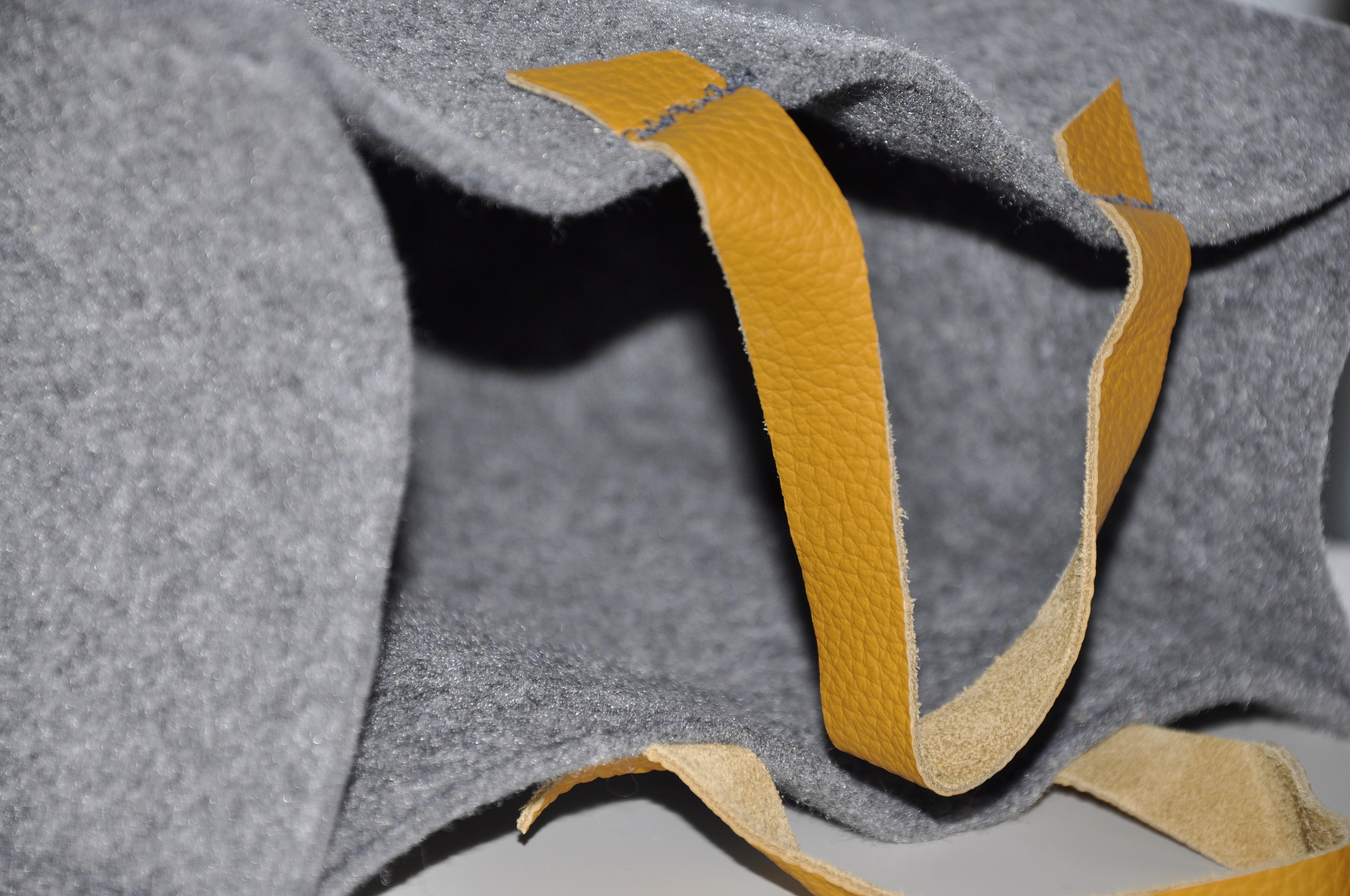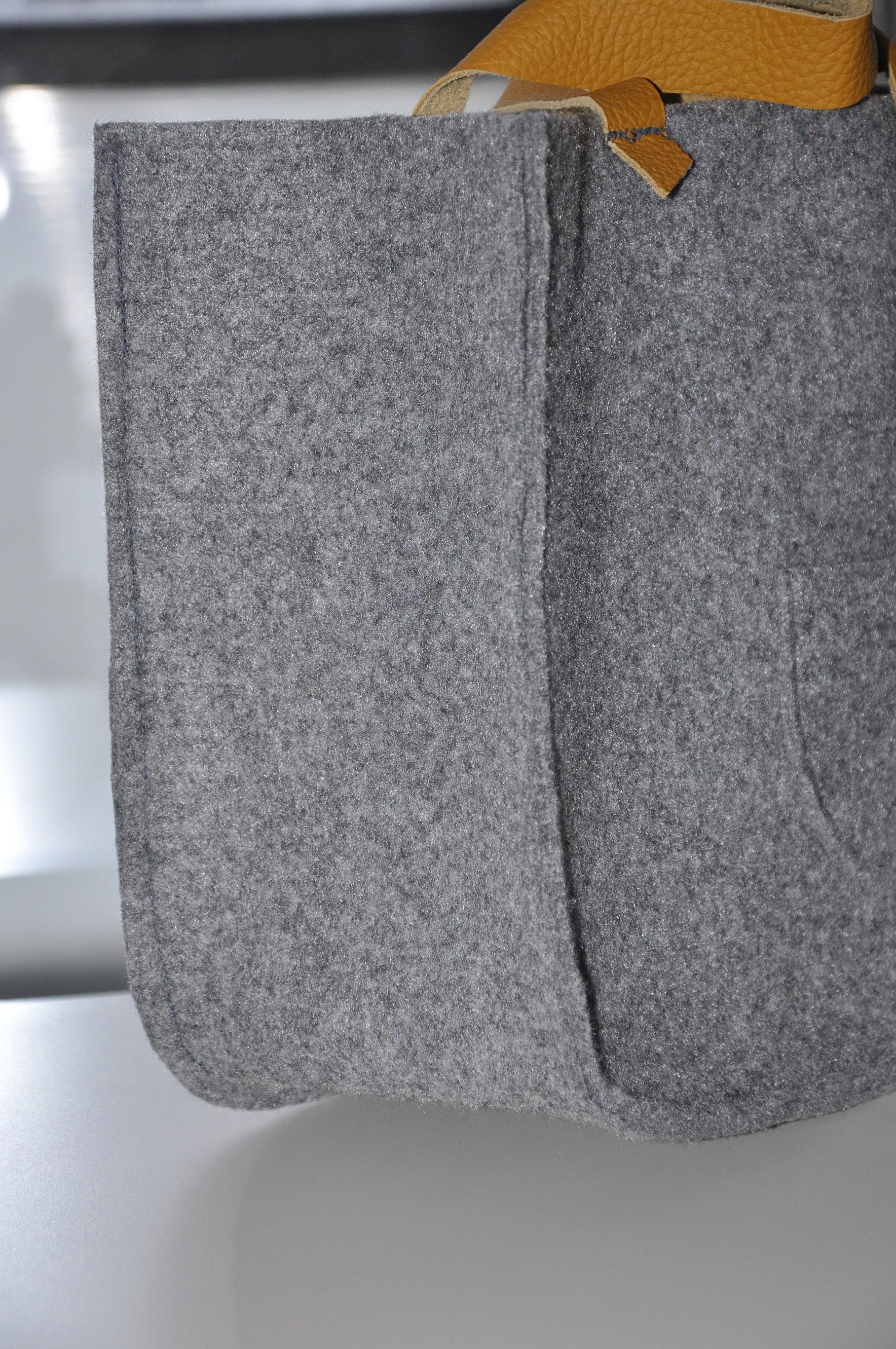 Tym razem pokusiłam się na dość sporych rozmiarów torbę z szarego filcu z rączkami ze skóry w pięknym musztardowo-miodowym kolorze. To jest tak zwana wielozadaniowa torba prezentowa 🙂 Tak dobrze przeczytaliście. Został w nią opakowany prezent urodzinowy z informacją, ze torba jest wielorazowego użytku, a że torba jest słusznych rozmiarów, to pomieści dokumenty i inne ważne rzeczy.
