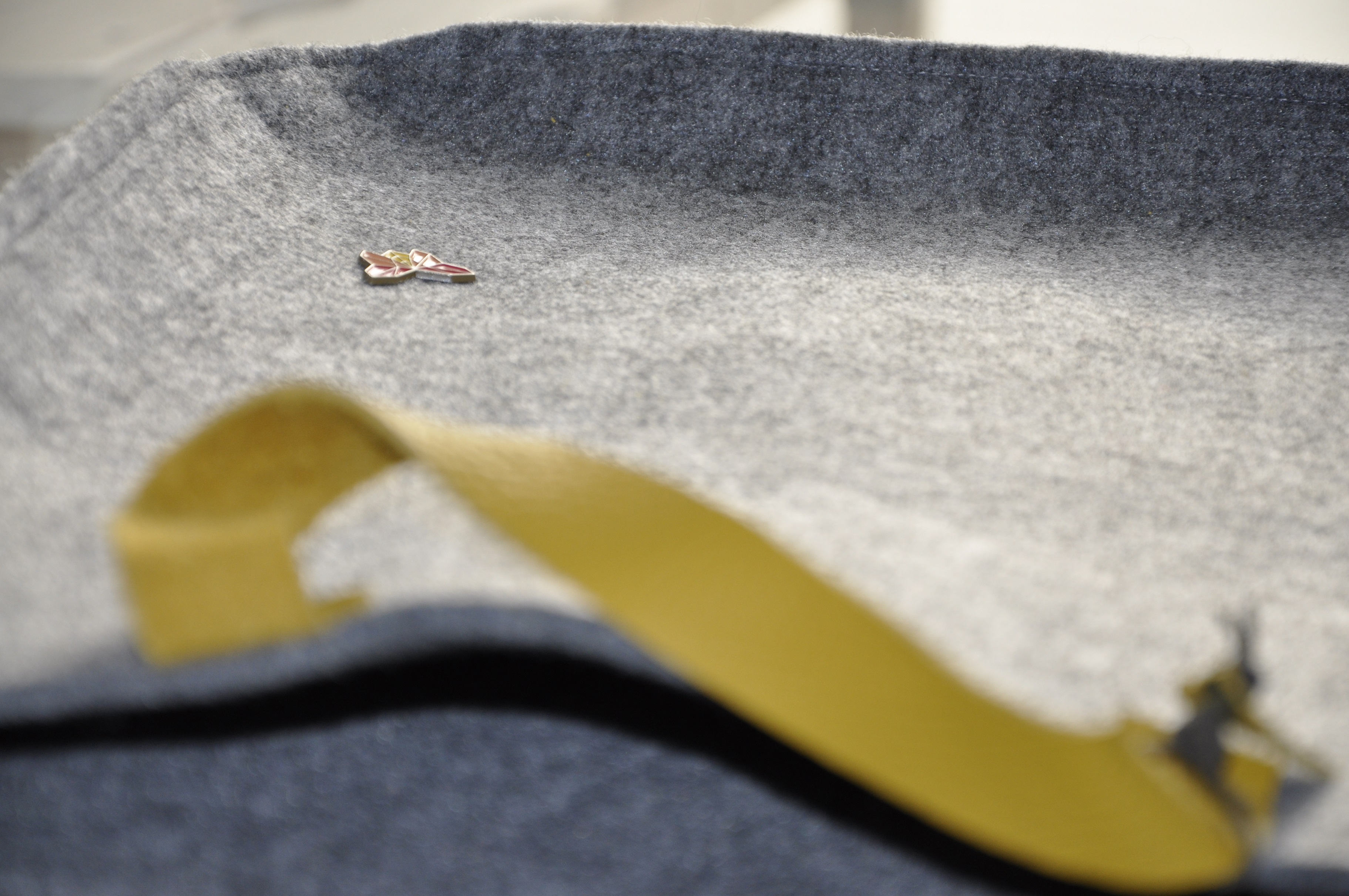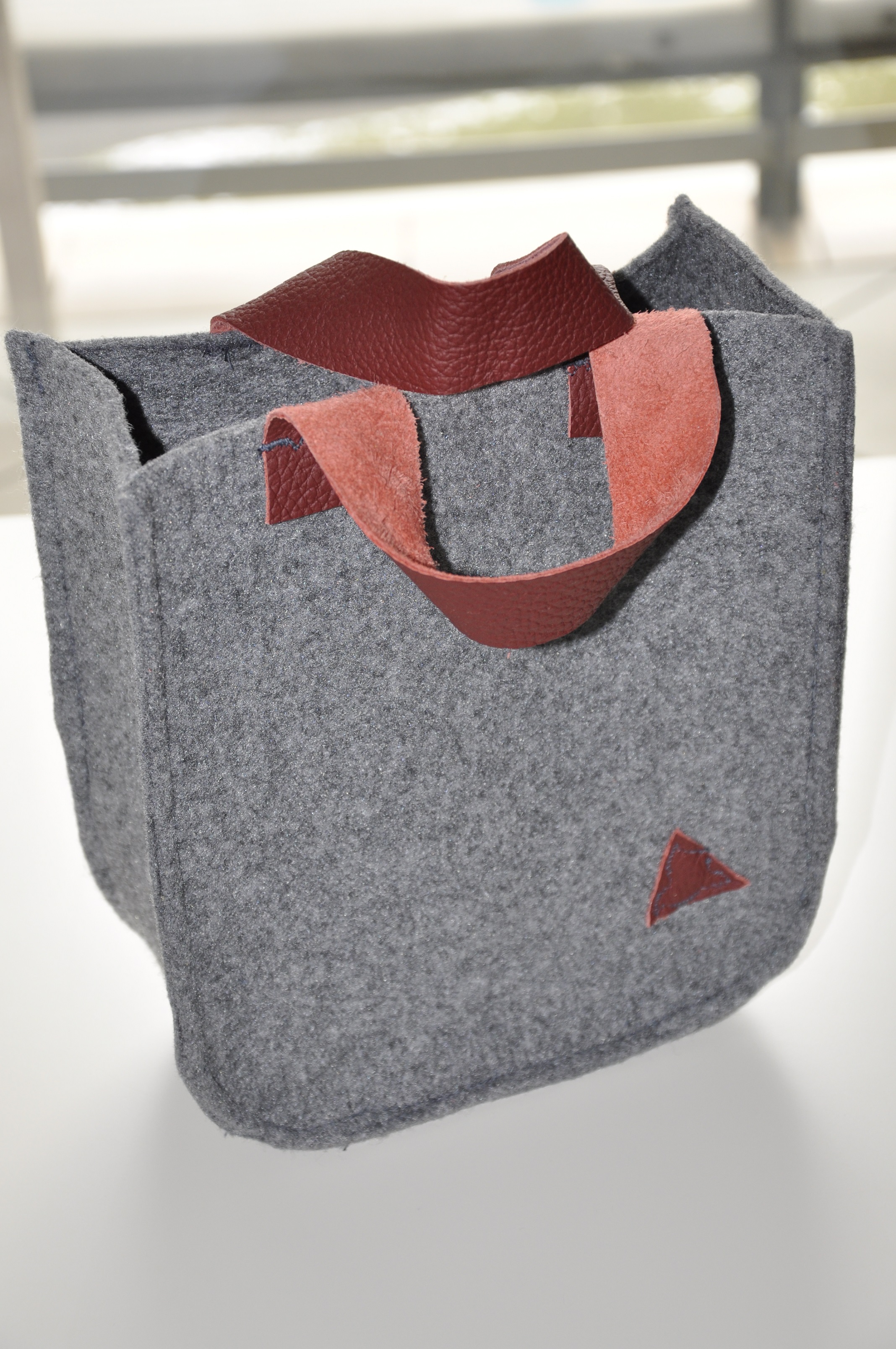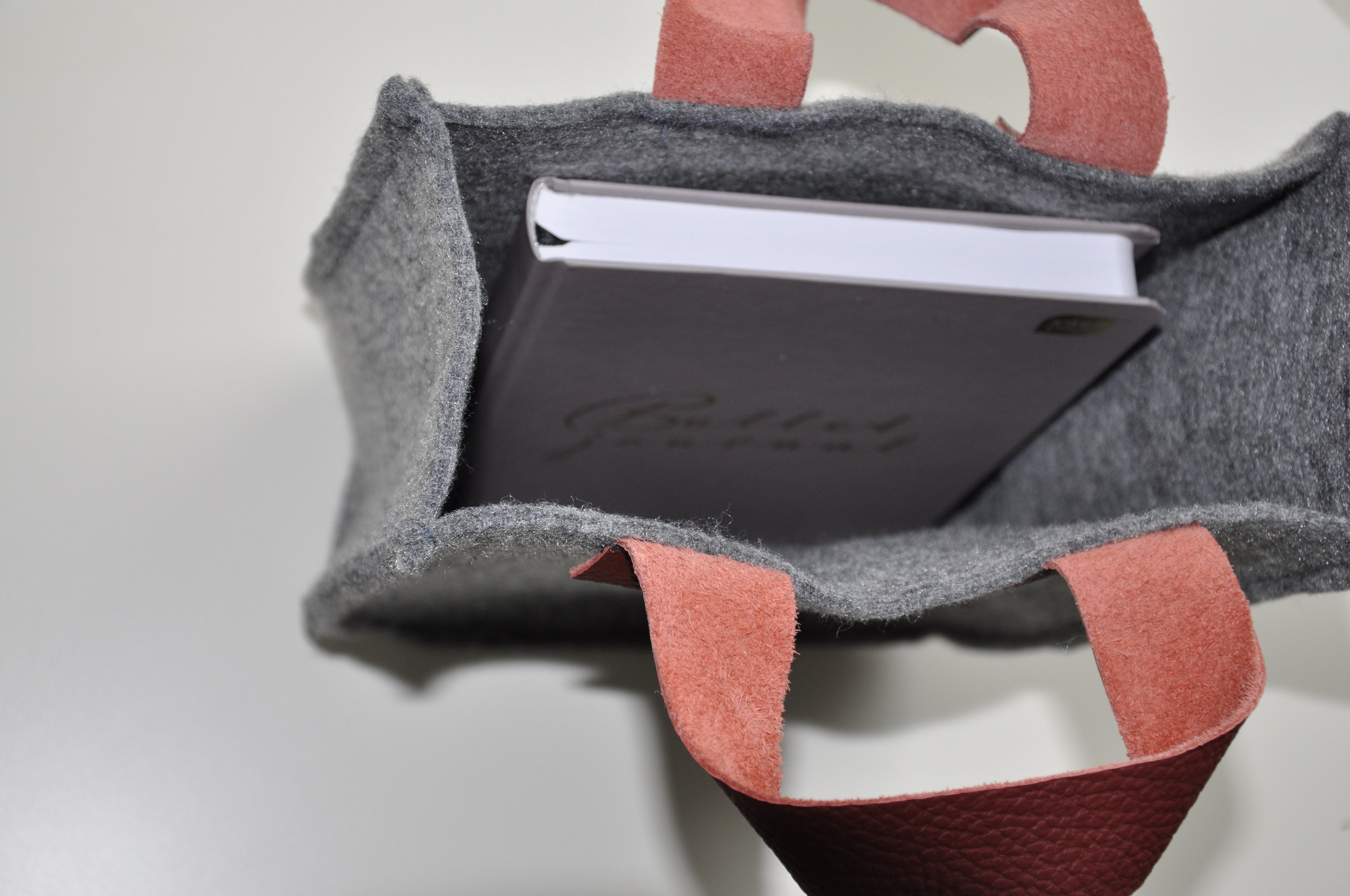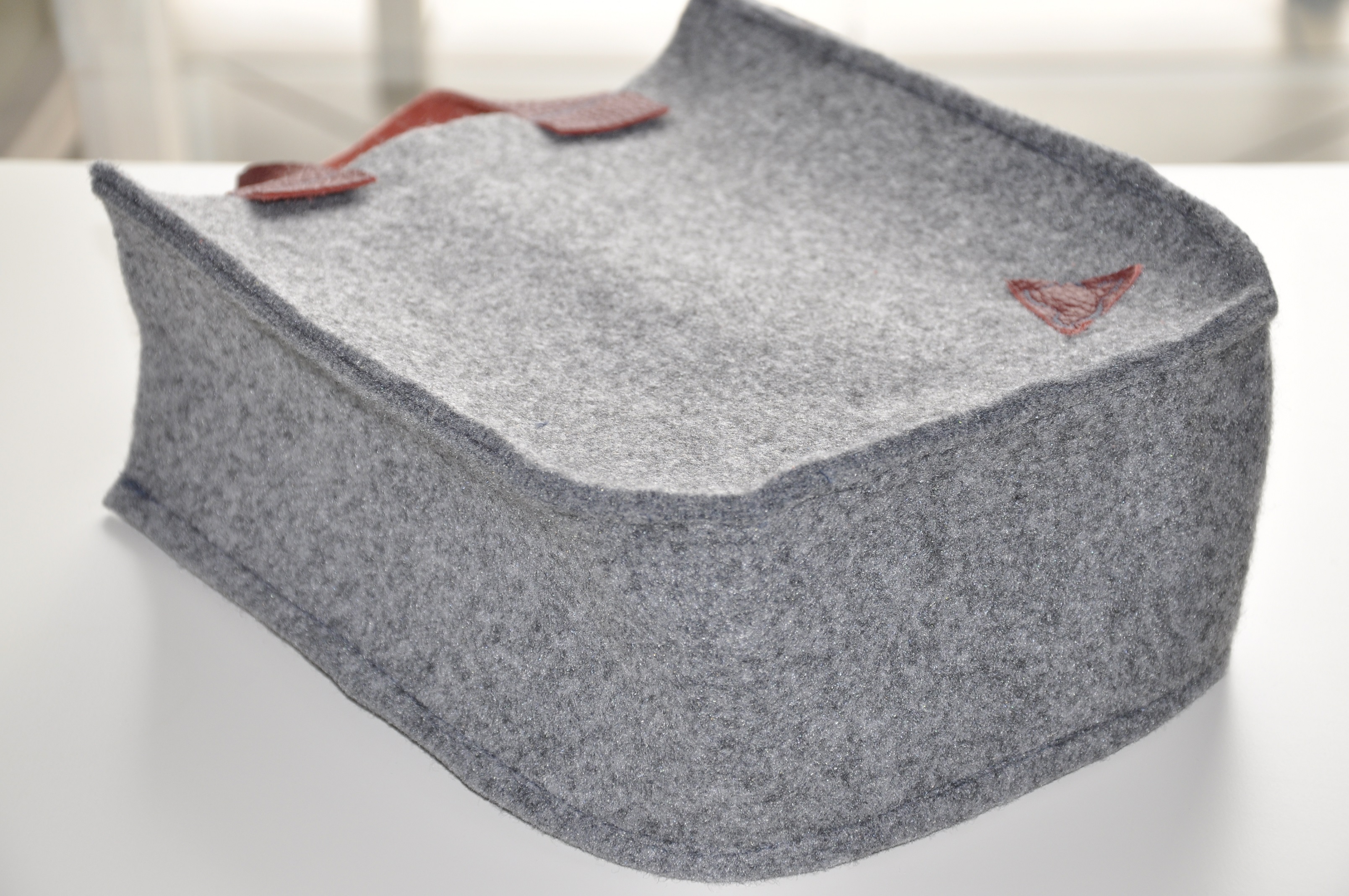Tym razem pokusiłam się na dość sporych rozmiarów torbę z szarego filcu z rączkami ze skóry w pięknym musztardowo-miodowym kolorze. To jest tak zwana wielozadaniowa torba prezentowa 🙂 Tak dobrze przeczytaliście. Został w nią opakowany prezent urodzinowy z informacją, ze torba jest wielorazowego użytku, a że torba jest słusznych rozmiarów, to pomieści dokumenty i inne ważne rzeczy.