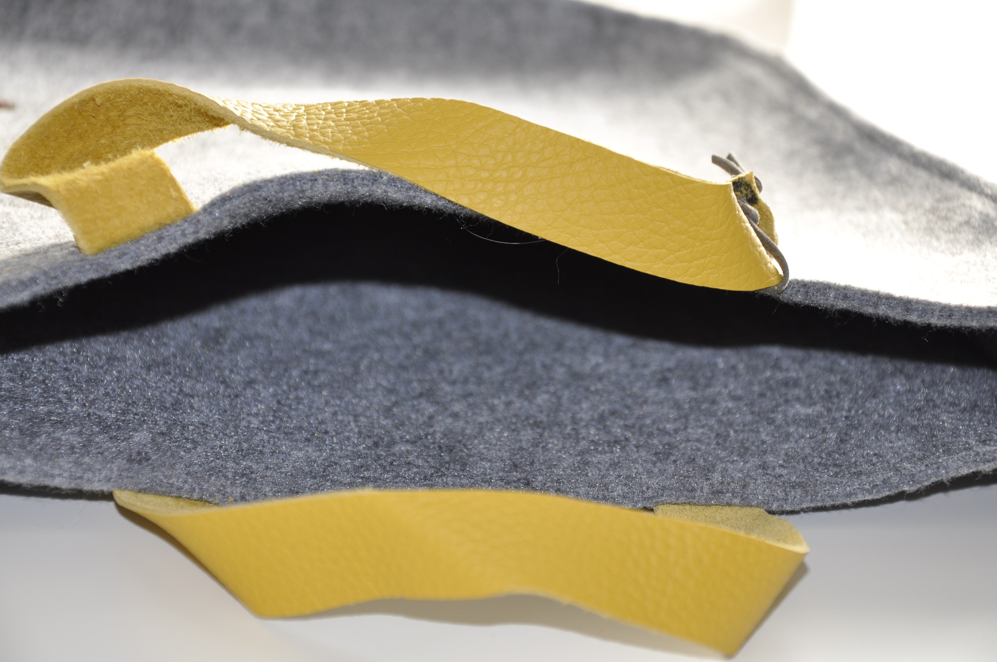 Niski ale przepastny (o szerokości 15-20 cm), zmieści wiele drobiazgów jak włóczkę czy gazety. Może też posłużyć jako oryginalna torba na fitness (posiada kieszonkę na karnet lub klucze). Uchwyty ze skóry naturalnej w kolorze ciemnej musztardy.