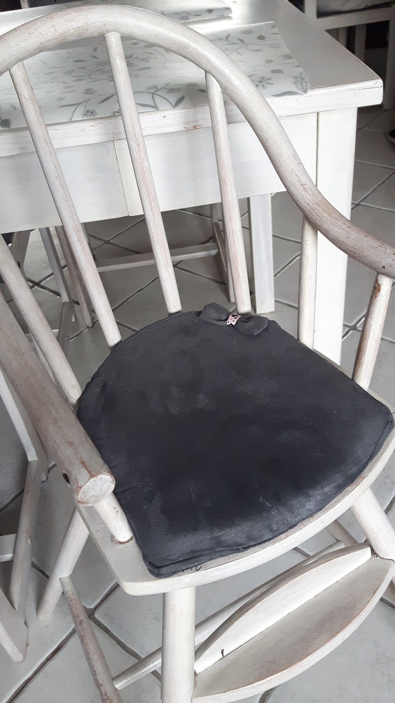 Stwierdziliśmy, że wygodniej nam będzie, jeśli najmłodsza odziedziczy krzesełko po średniej, a średnia otrzyma siedzisko na krzesło, dzięki któremu będzie siedzieć wyżej, ale też będzie można je łatwo usunąć jak przyjdą goście. W pierwszej chwili przeszukałam Internet w poszukiwaniu odpowiedniego siedziska, w celu zakupu. Niestety albo mi się nie podobały, albo cenę miały zaporową – no i kolory bardzo krzykliwe. Owszem z przedmiotu miało korzystać dziecko, ale ja lubię mieć ład i porządek – uwielbiam też harmonię we wnętrzach – oraz biele i szarości 🙂