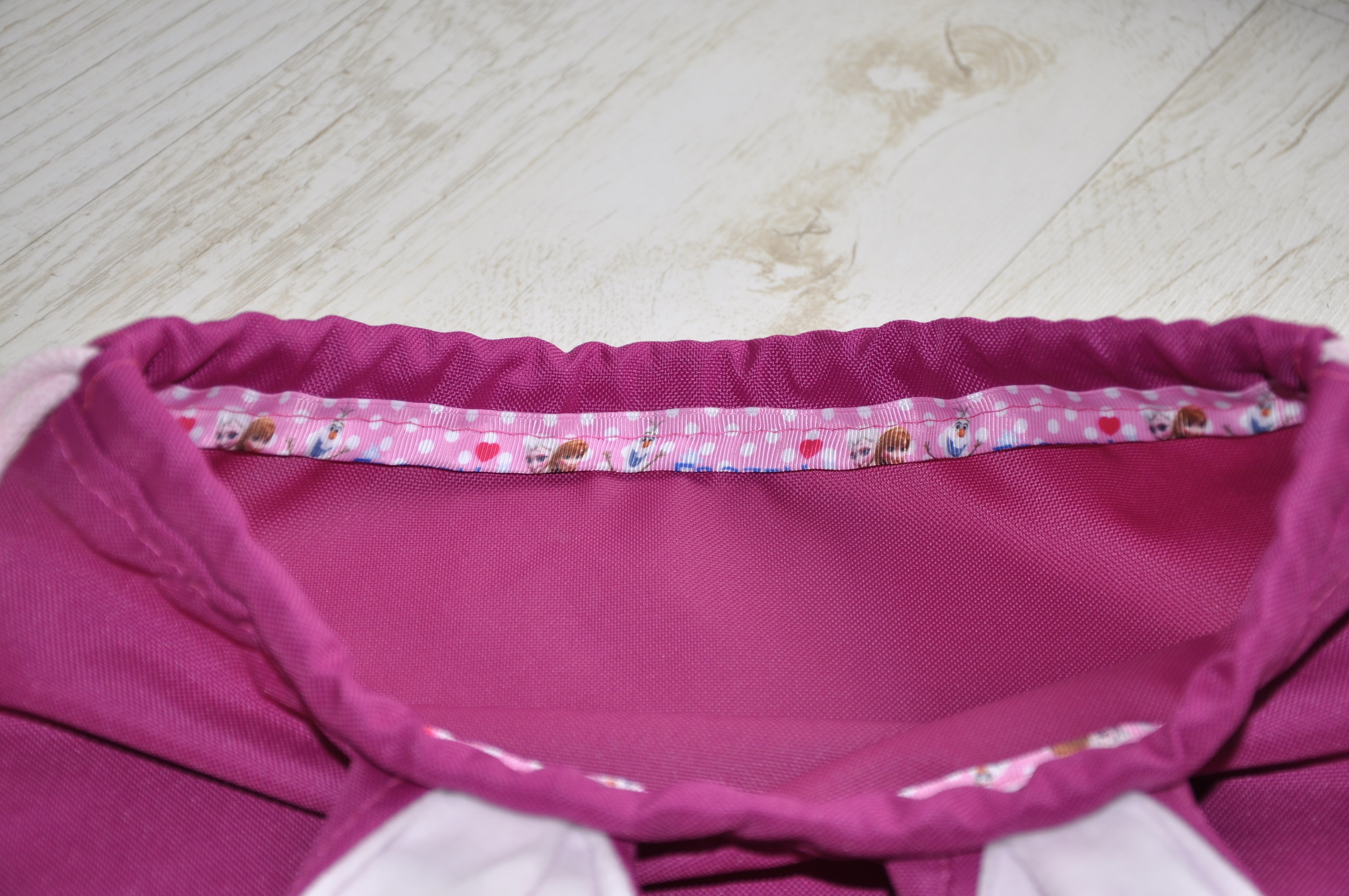 Jeśli chodzi o wykończenie to zdecydowałam się na tasiemkę rypsową ozdobną z motywem Krainy Lodu