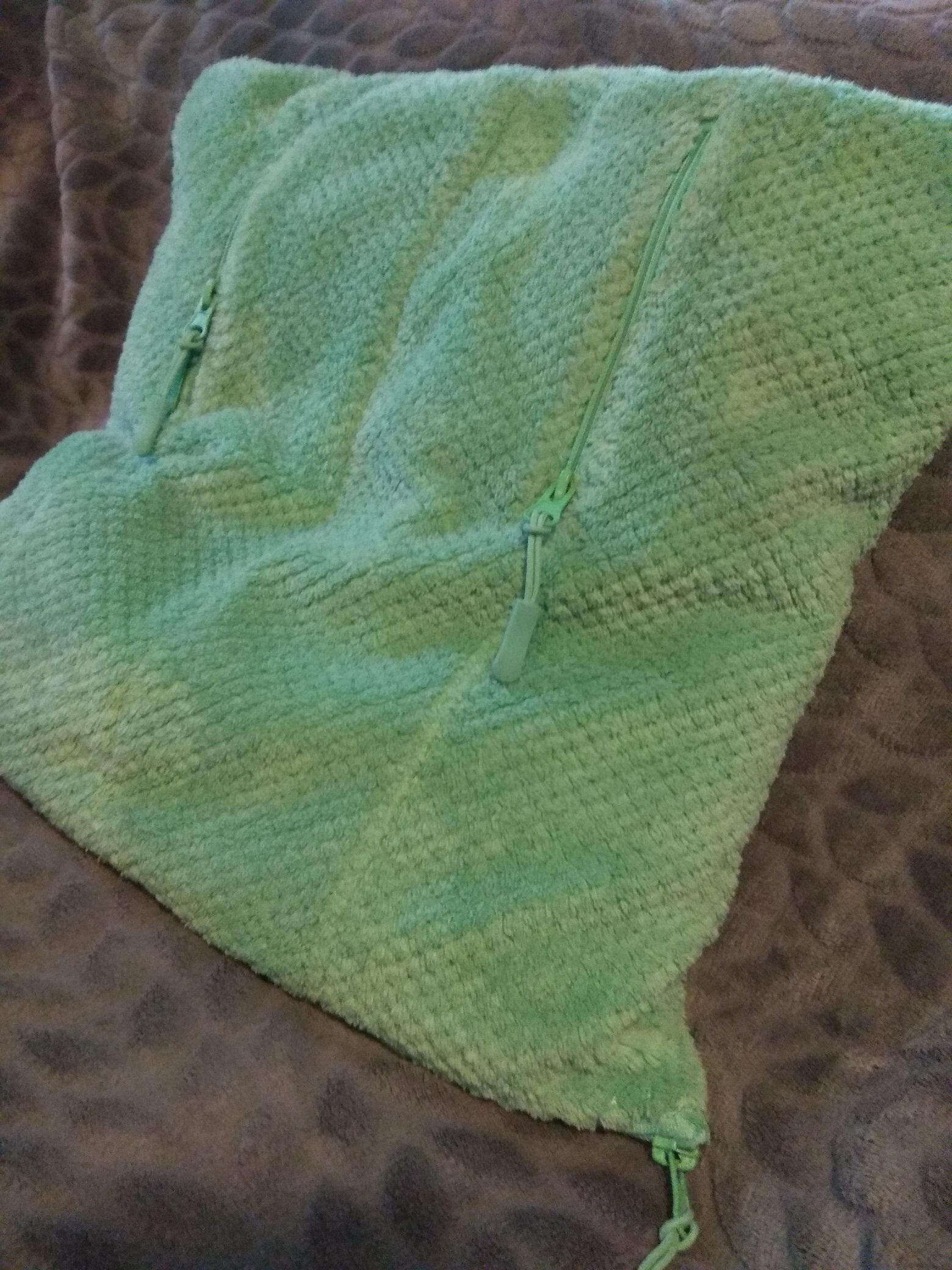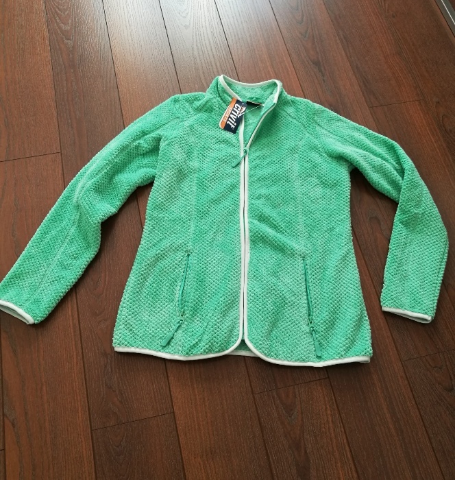 Jednak z niektórymi rzeczami, choć fajnymi trzeba pożegnać się na zawsze. Tak było w przypadku bluzy polarowej. Siostra kupiła sobie w popularnej sieciówce piękną miętowo/seledynową bluzę polarową. Mogę Wam ją pokazać dzięki uprzejmości Pani Oli :)(jeszcze raz dziękuję Pani Olu :)), bo sama nie dysponowałam zdjęciem przed metamorfozą.